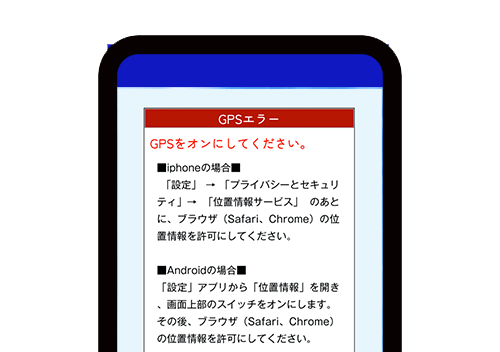 プライベートモード・シークレットモードでは正常に動作しません。 ★ スマートフォンの位置情報