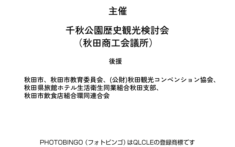 秋田市、秋田市教育委員会、(公財)秋田観光コンベンション協会、 秋田県旅館ホテル生活衛生同業組合秋田支部、秋田市飲食店組合環同連合会